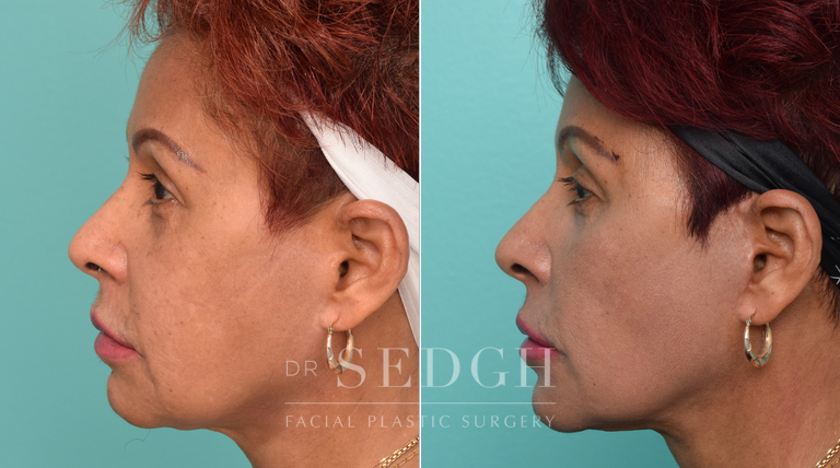 The following facelift before and after images demonstrate the carefully curated work of Dr. Jacob Sedgh, a double board-certified and highly renowned surgeon based in West Hollywood. Dr. Sedgh has experience performing facelifts on a range of patients and will work alongside your anatomy and goals to create a personalized surgical plan.