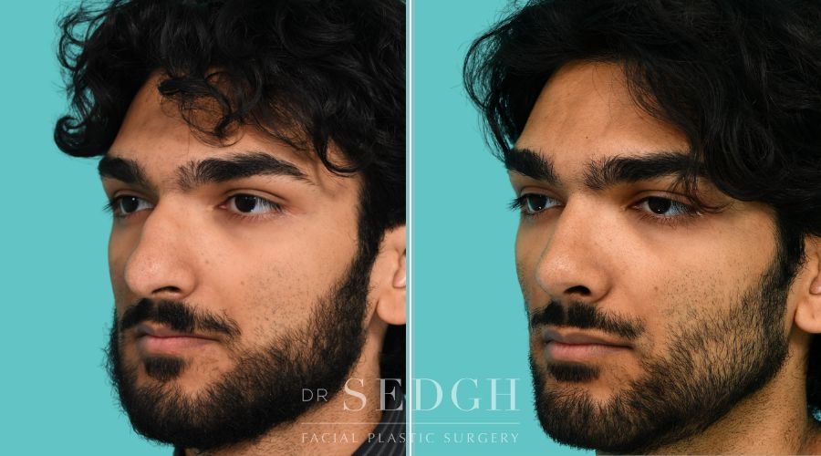 The following male rhinoplasty before and after images are examples of Dr. Jacob Sedgh’s expert craftsmanship and strict attention to detail. Dr. Sedgh works with his patients to understand precisely what they wish to change before analyzing their anatomy and facial symmetry to plan a rhinoplasty surgery that best meets their unique needs.